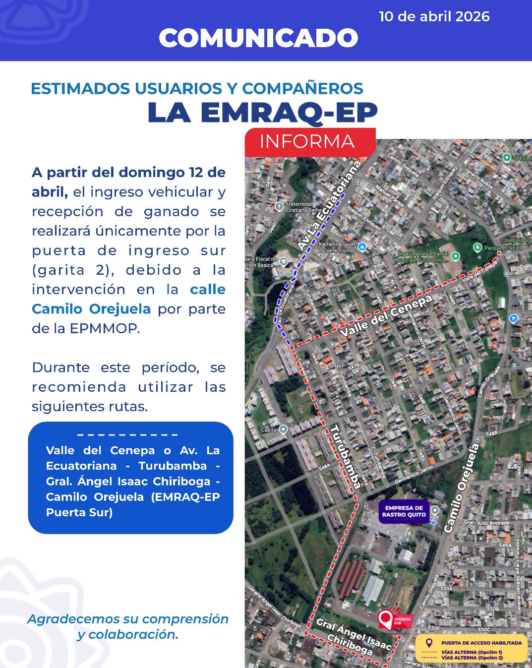 TURNOSDE FAENAMIENTO LA MEJORCARNE CONÓCENOSSOMOS RASTRO CONTÁCTANOSTU OPINIÓN ES IMPORTANTE DENUNCIAACTOS DE CORRUPCIÓN QUITO INFORMA 360 Kg de carne decomisados y un camal clandestino clausurado en operativosLeer más...La Empresa de Rastro Quito obtiene por primera vez la Certificación BPMLeer más...Carne de calidad y cortes perfectos: Quito capacita a sus carnicerosLeer más...Más de 15 mil personas asistieron al Asado Fest & Fuego 2025Leer más...Controles constantes impiden que productos cárnicos riesgosos lleguen a las mesas de miles de familias en QuitoLeer más...Quito aprovecha sus residuos, suelos más fértiles en parroquias rurales del sur de QuitoLeer más...Rastro Tour: Conozca cómo se obtiene la mejor carne de QuitoLeer más... QUITO POR TEMAS MOVILIDAD SEGURIDAD AMBIENTE CULTURA SOCIAL PRODUCCIÓN HÁBITAT